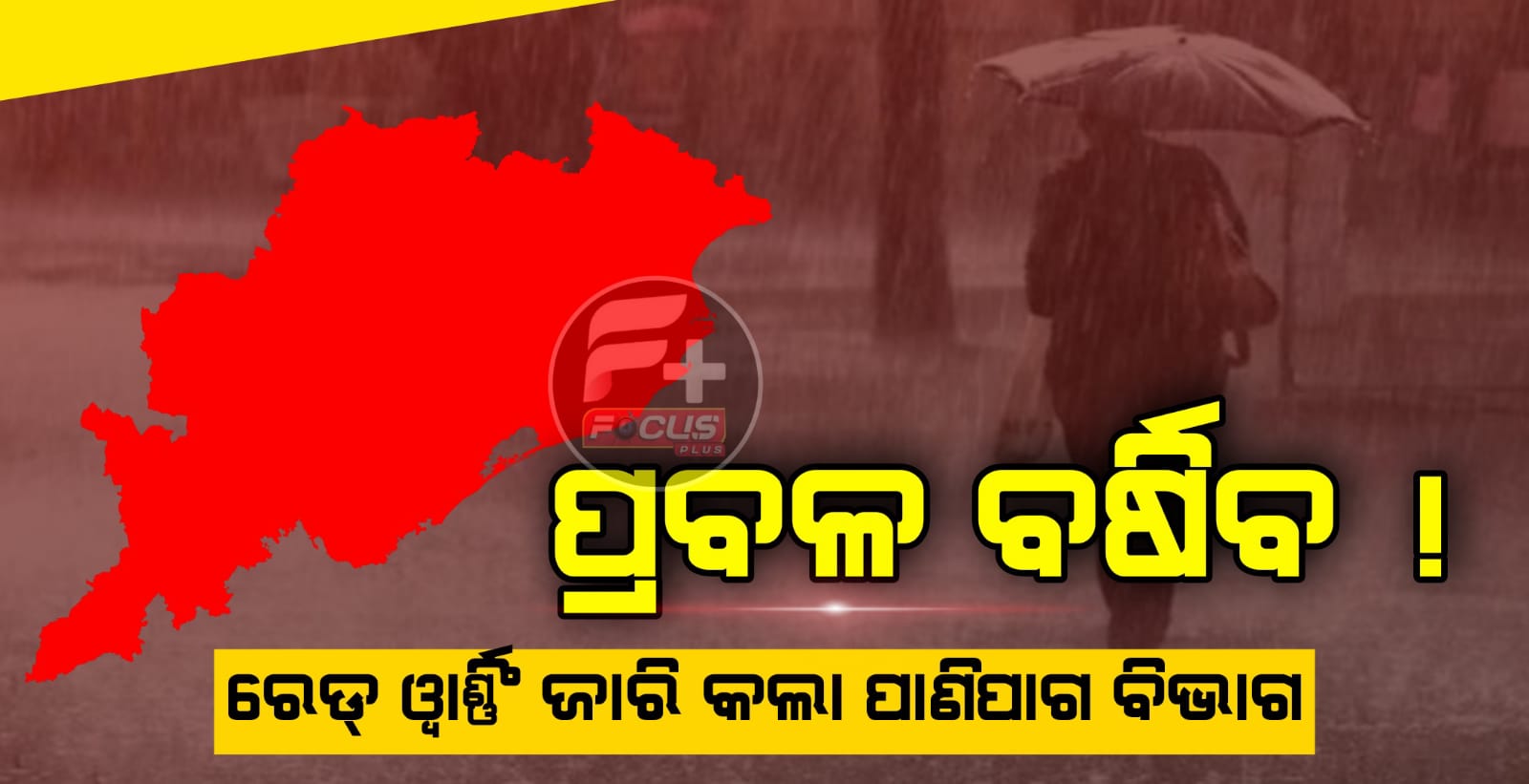ଆଜି ରାଜ୍ୟର ୪ଜିଲ୍ଲାରେ ପ୍ରବଳରୁ ଅତି ପ୍ରବଳ ବର୍ଷା ହେବା ନେଇ ପାଣିପାଗ ବିଭାଗ ପକ୍ଷରୁ ରେଡ୍ ଓ୍ୱାର୍ଣ୍ଣିଂ ଜାରି କରାଯାଇଛି | ବରଗଡ଼, ସମ୍ବଲପୁର, ଅନୁଗୁଳ ଓ କେନ୍ଦୁଝର ଜିଲ୍ଲାରେ ପ୍ରବଳରୁ ଅତି ପ୍ରବଳ ବର୍ଷା ହେବ |